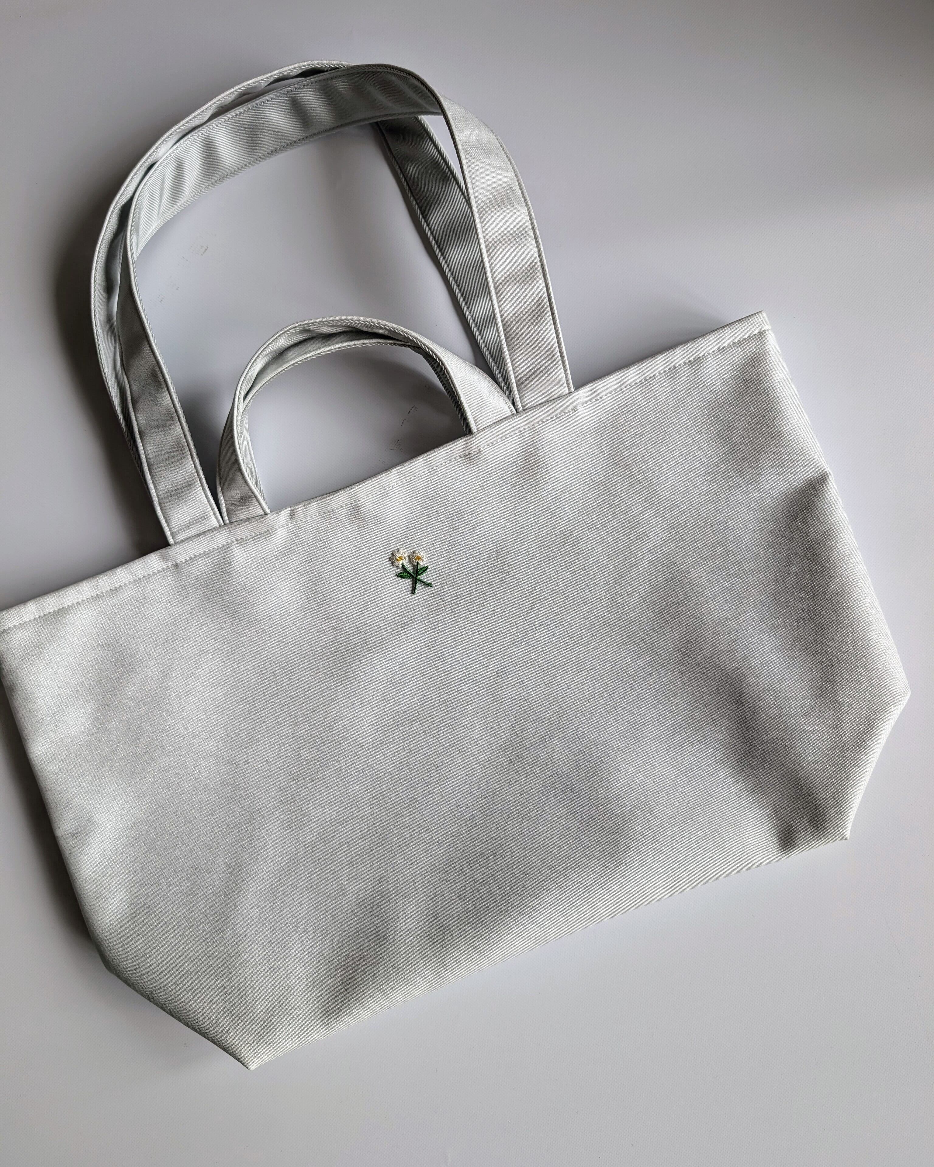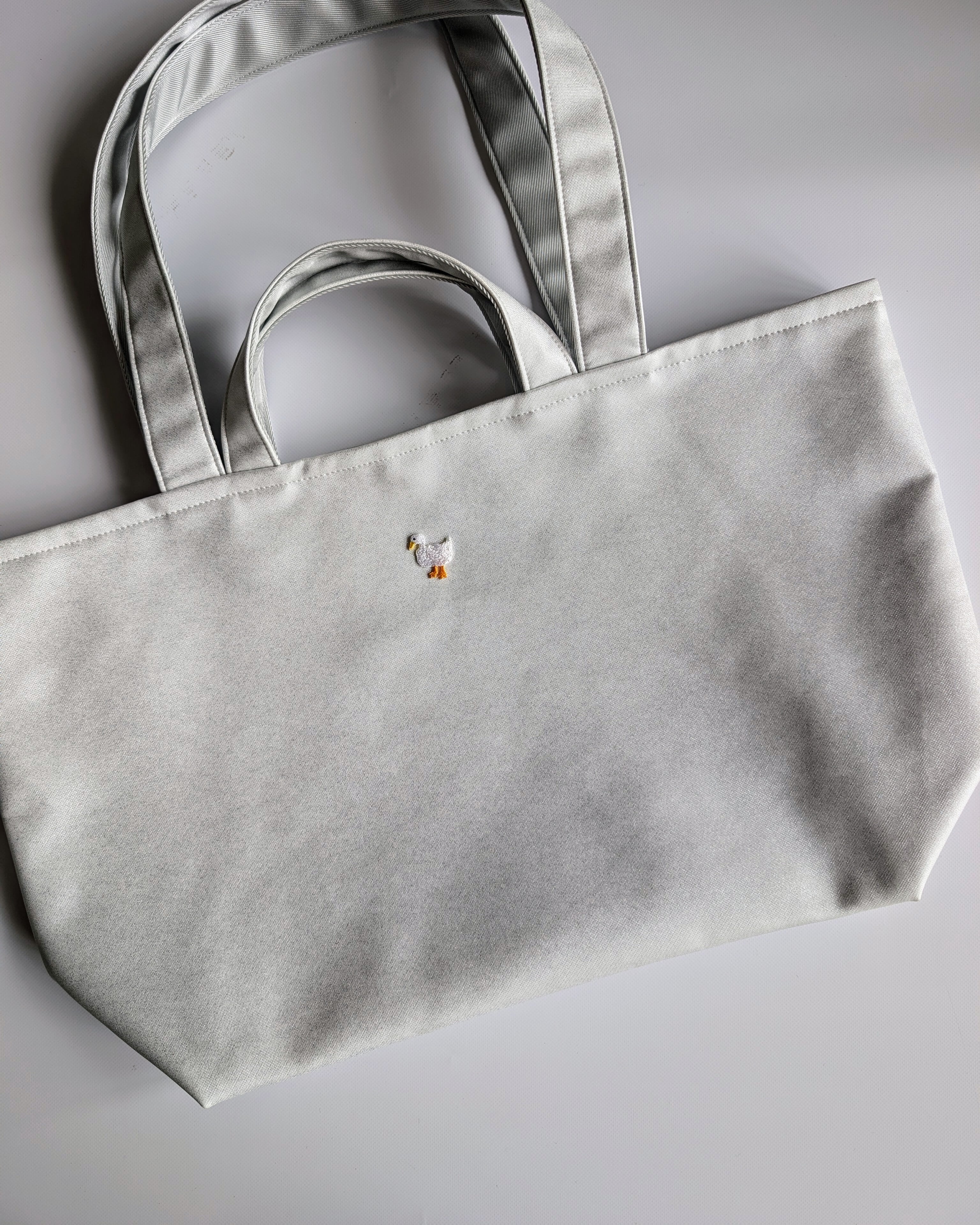 汚れもコーデも何も気にする事のない、万能トートバッグです。