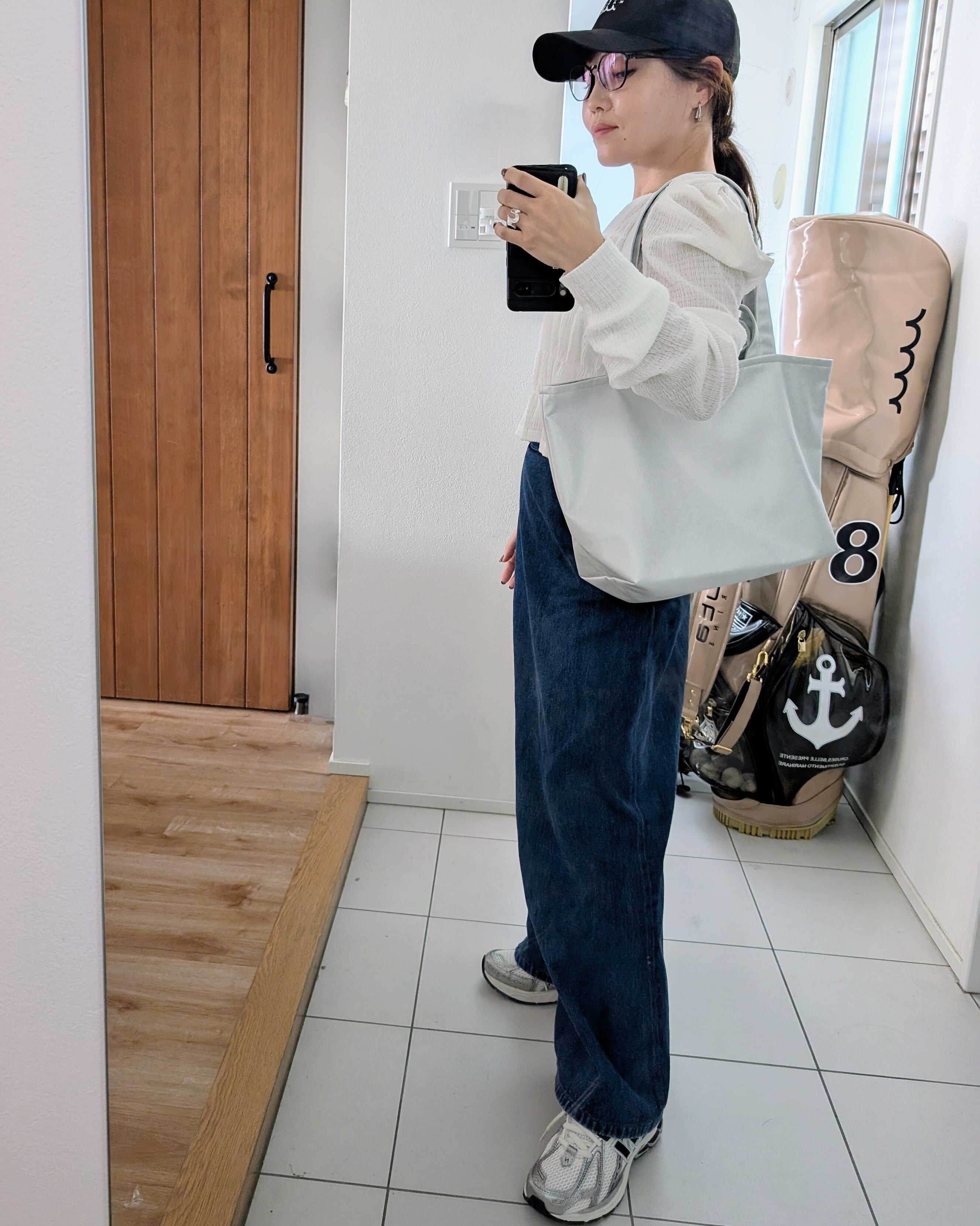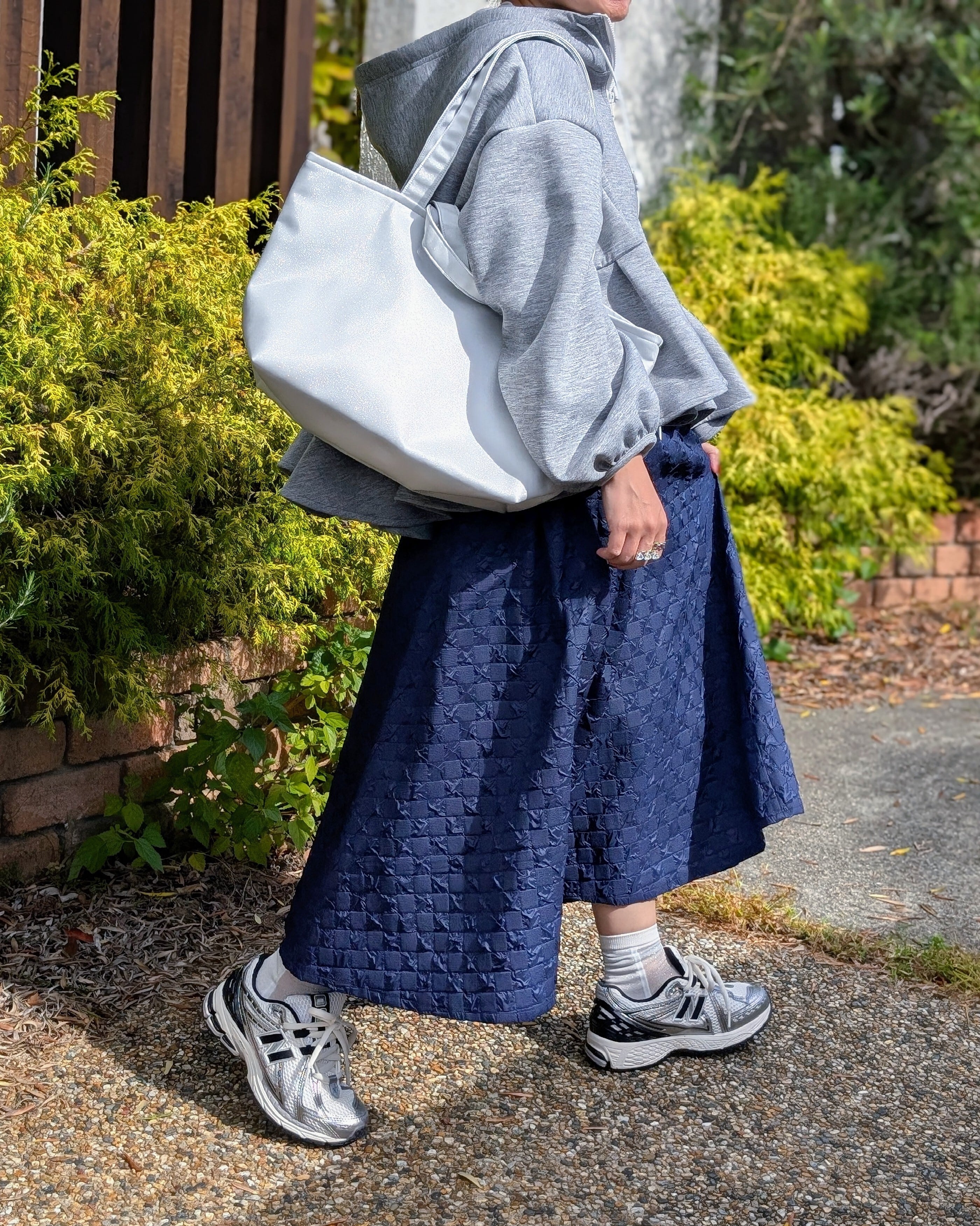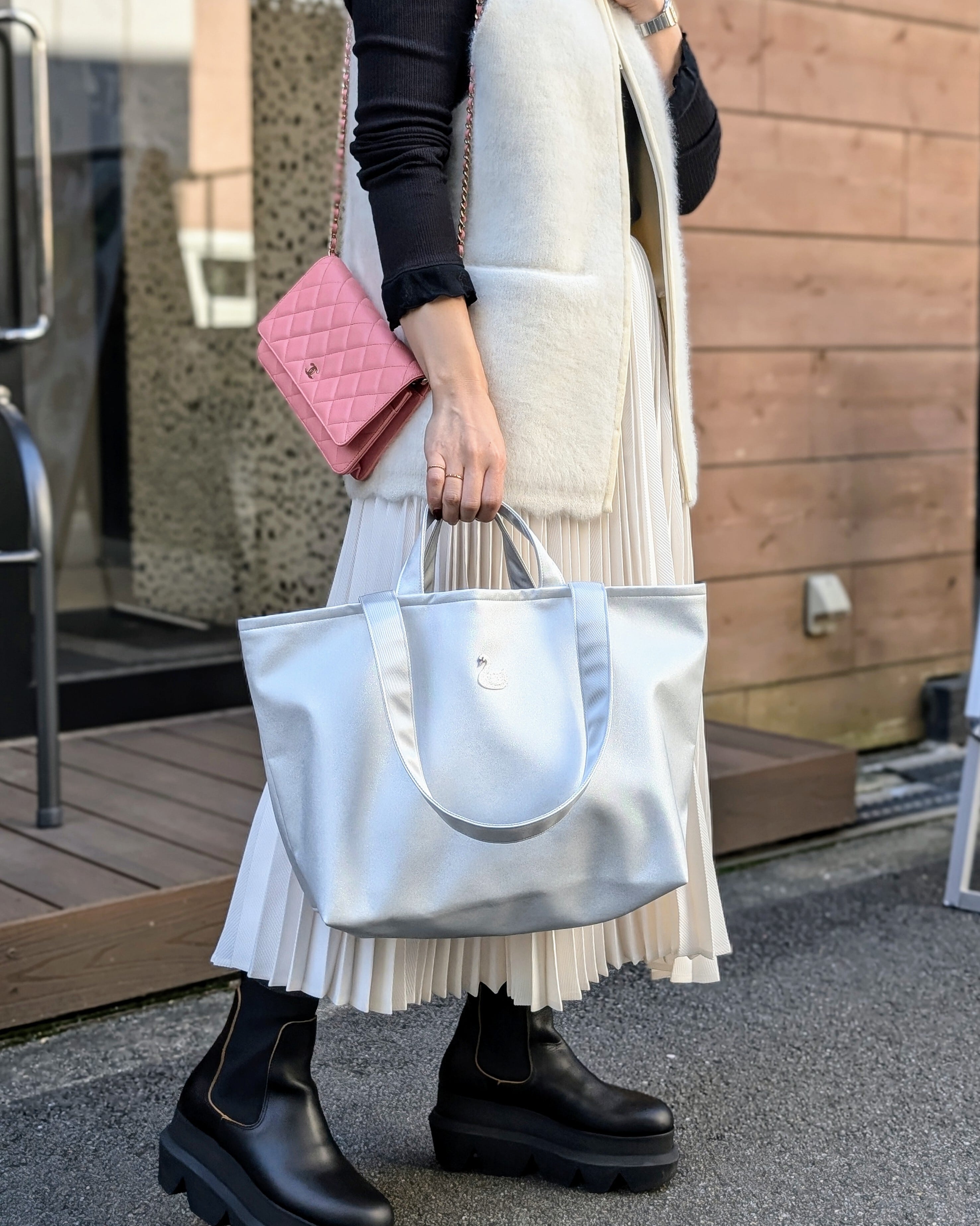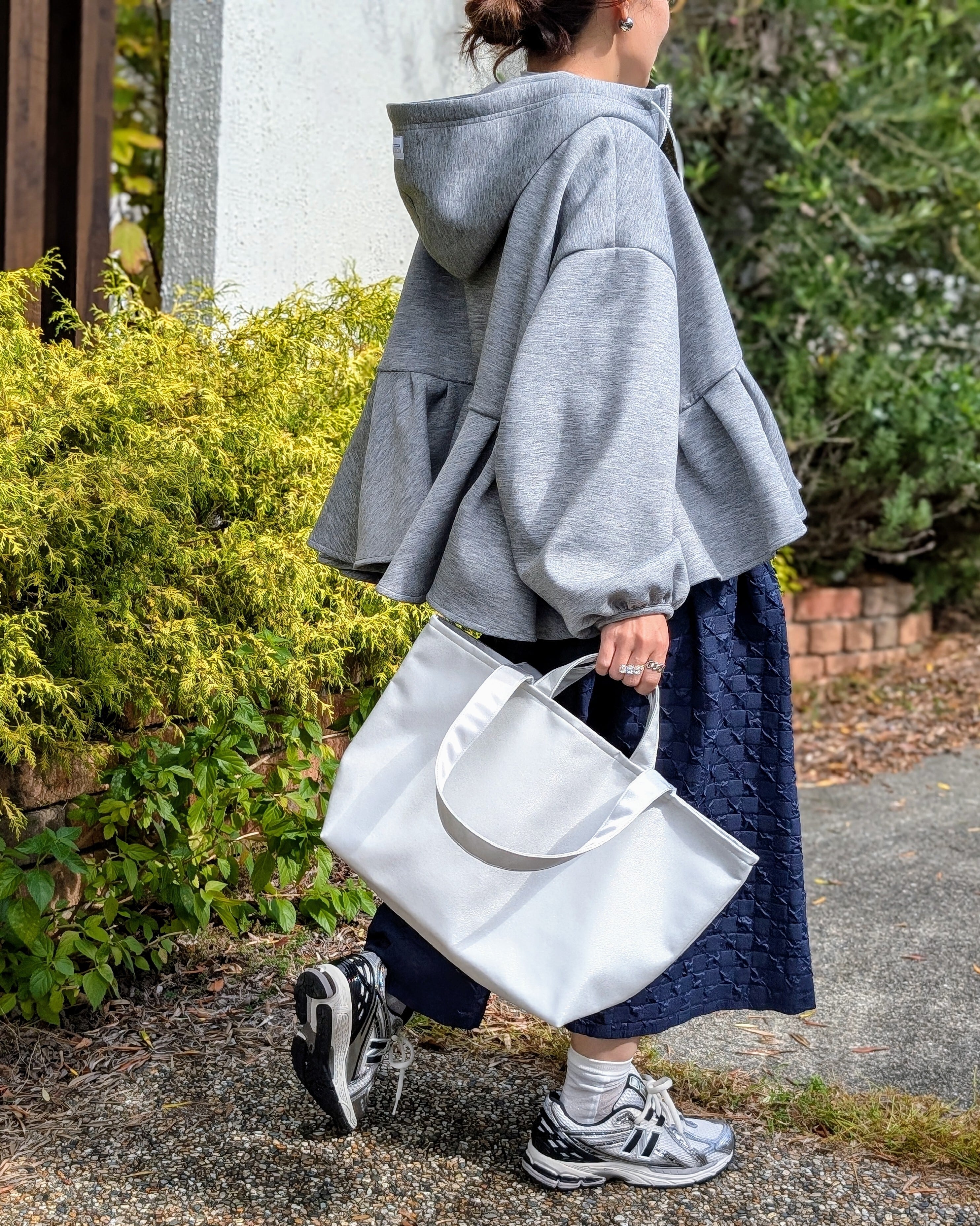 爽やかな白はバッグの大きさを感じさせず、軽やかにお持ちいただけます。