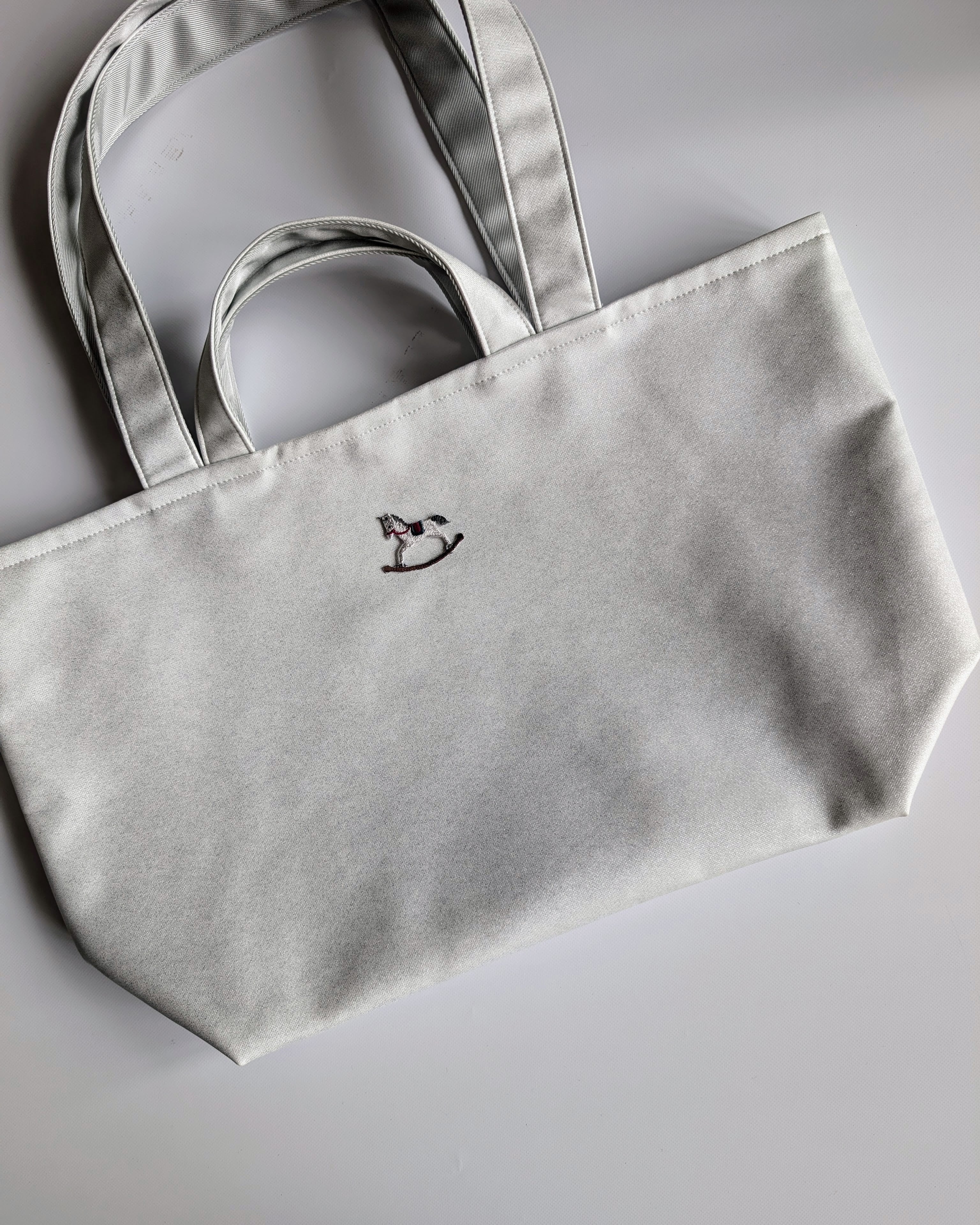 基本は無地のラメ生地のトートバッグです。