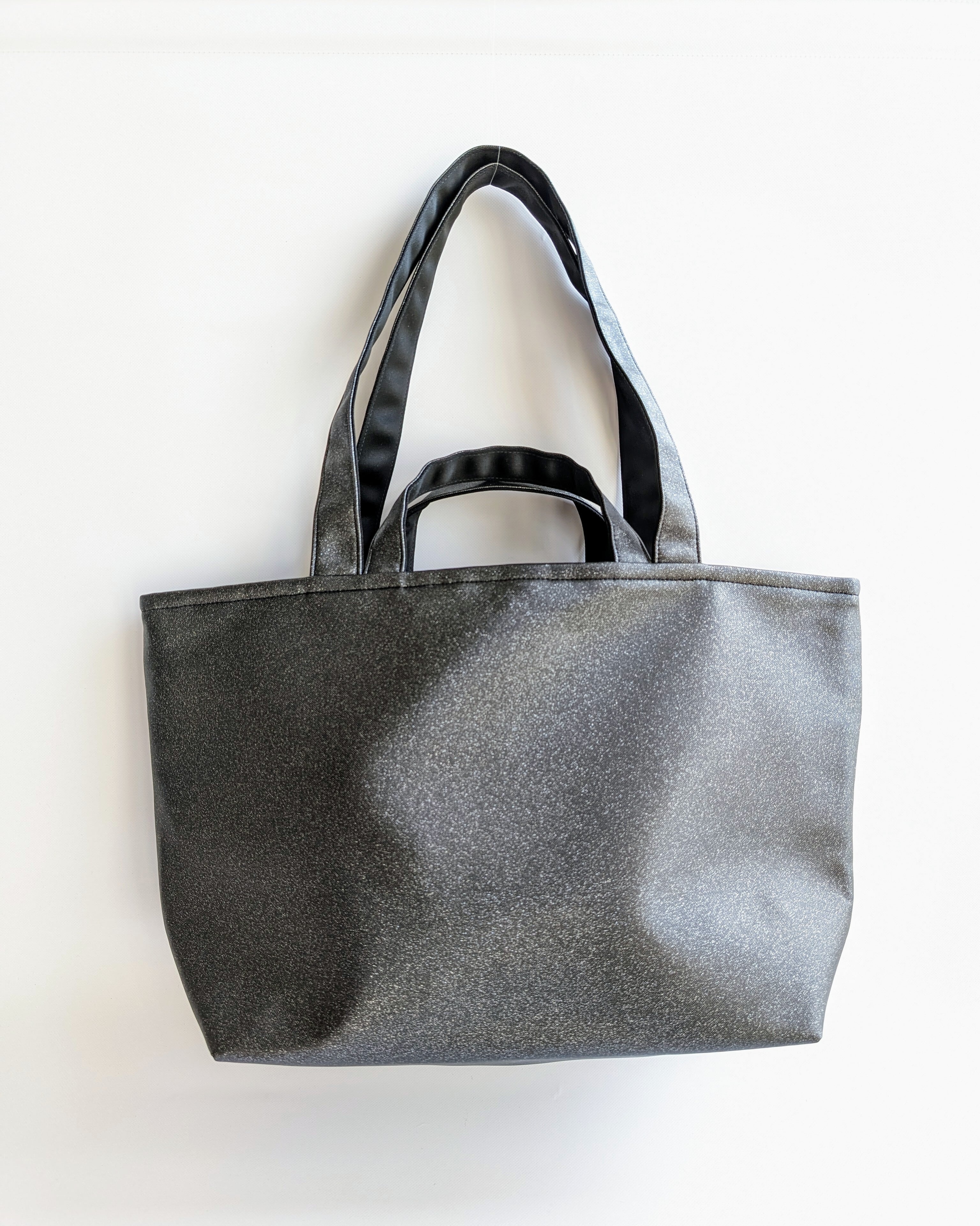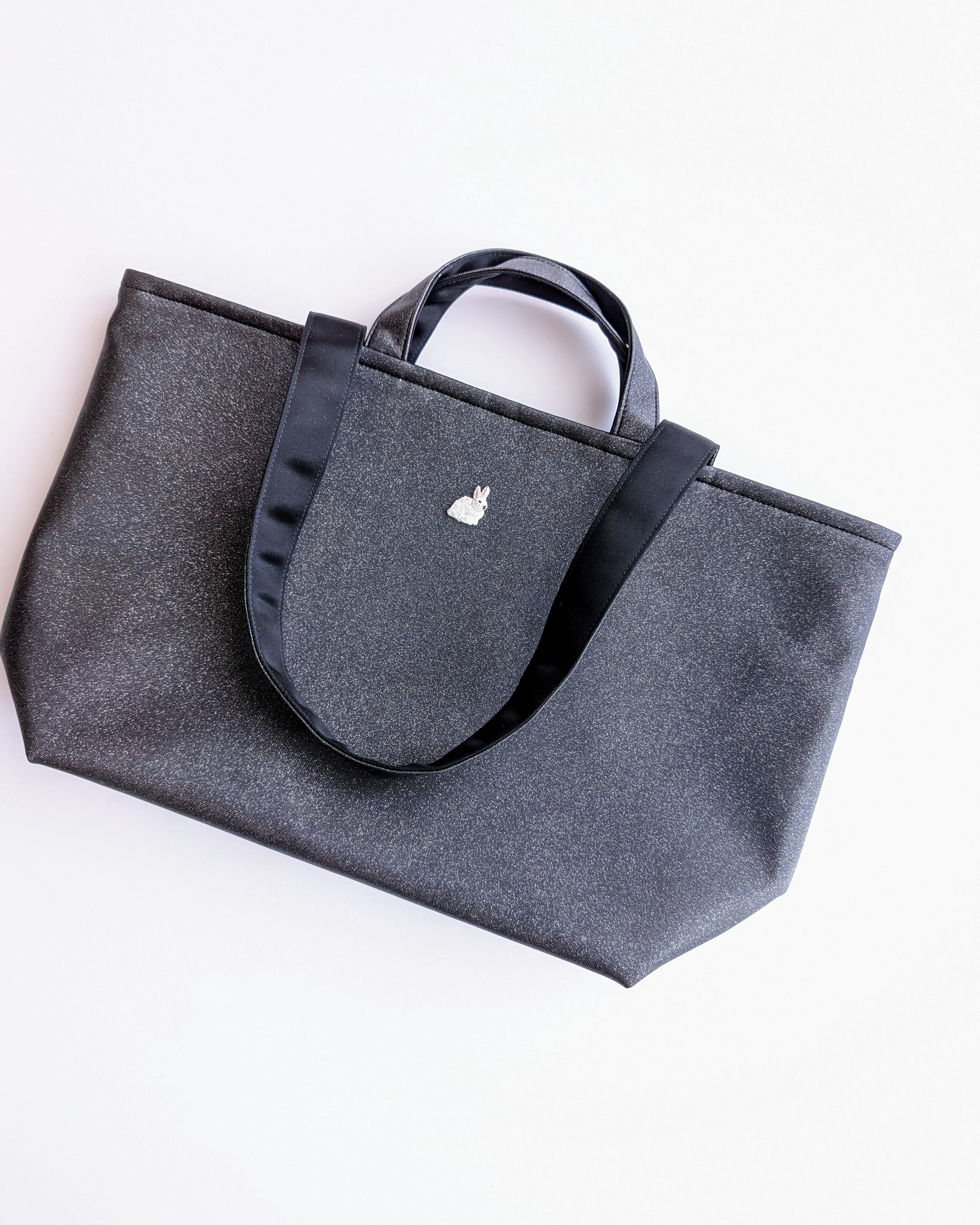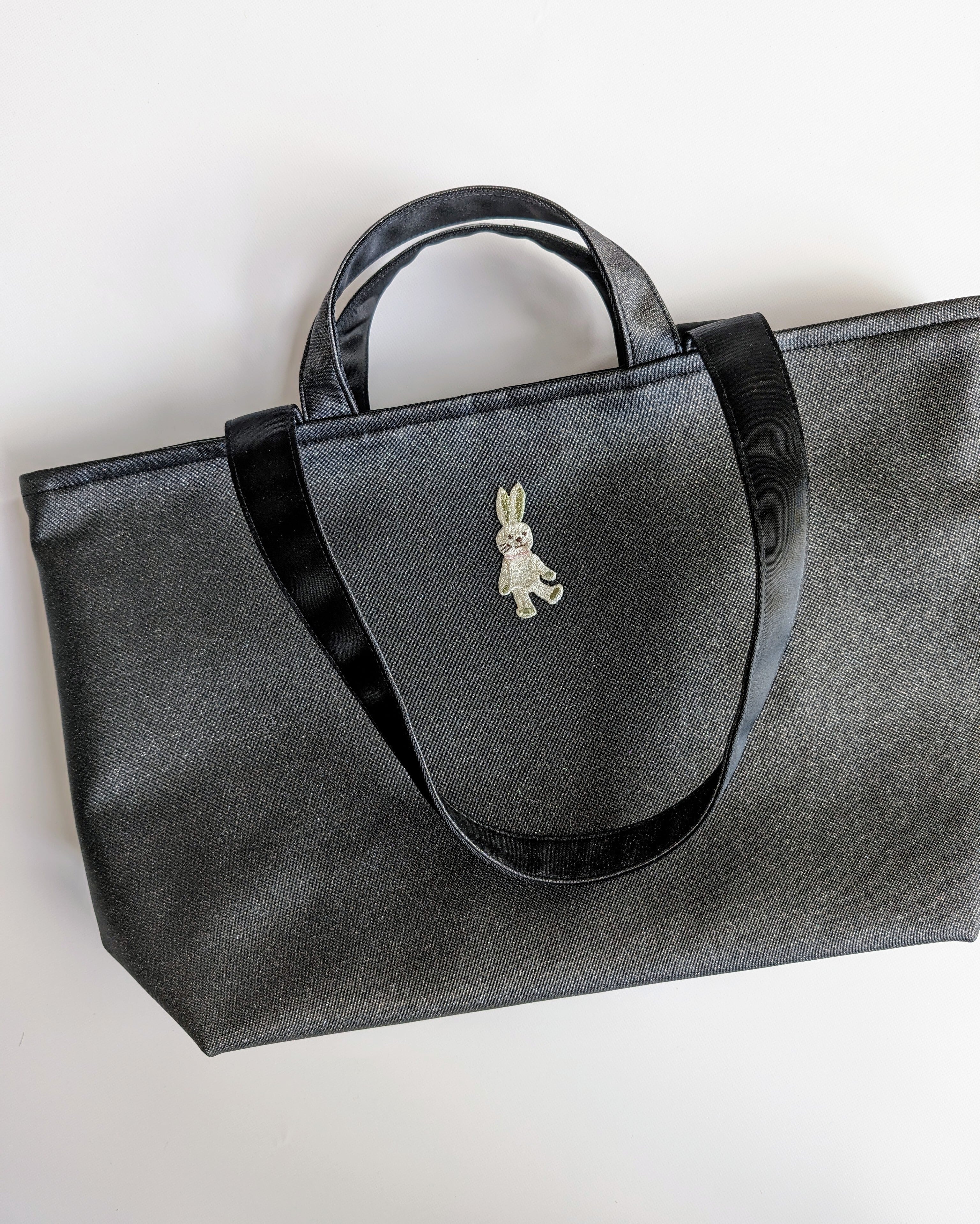 基本は無地のラメ生地のトートバッグです。