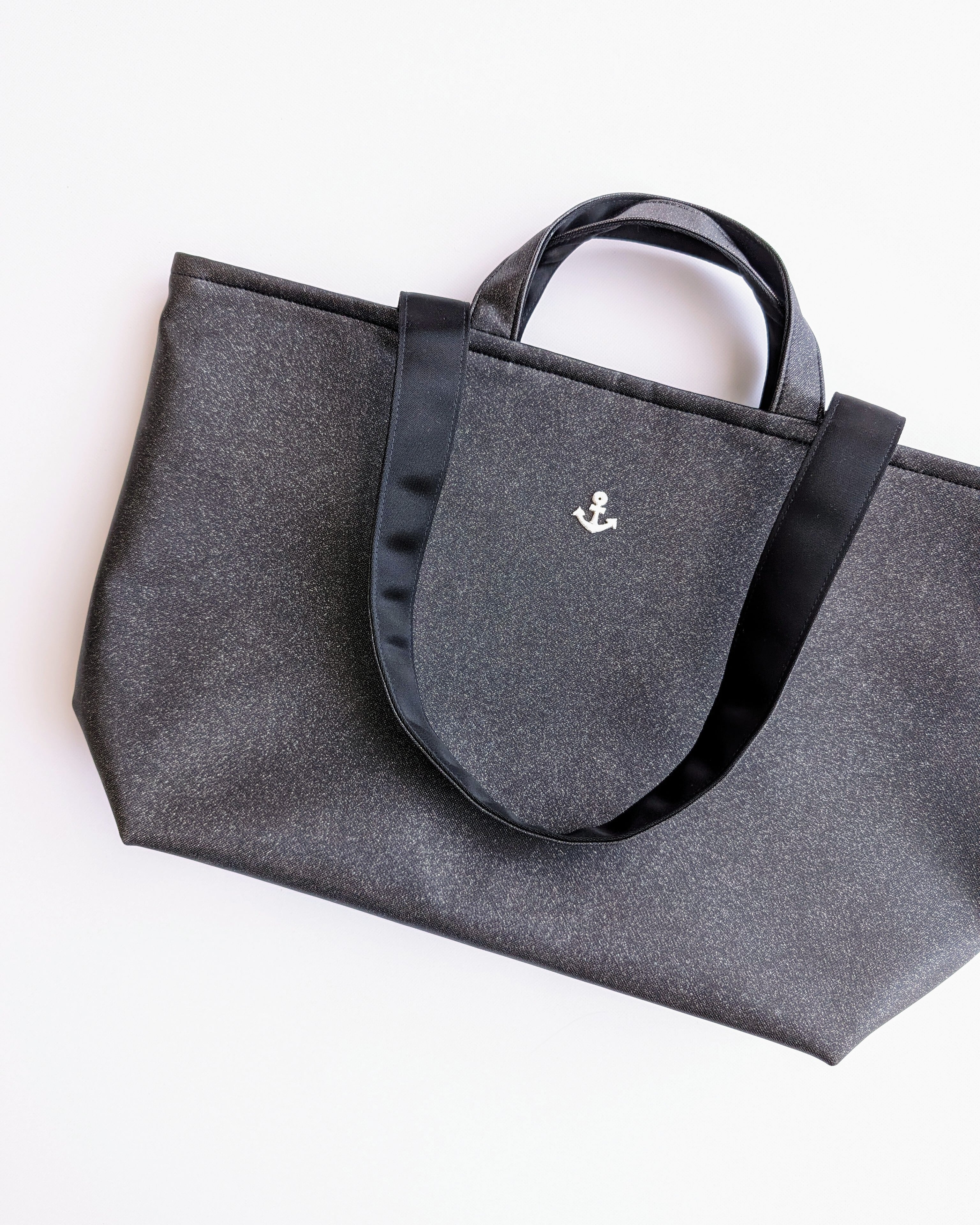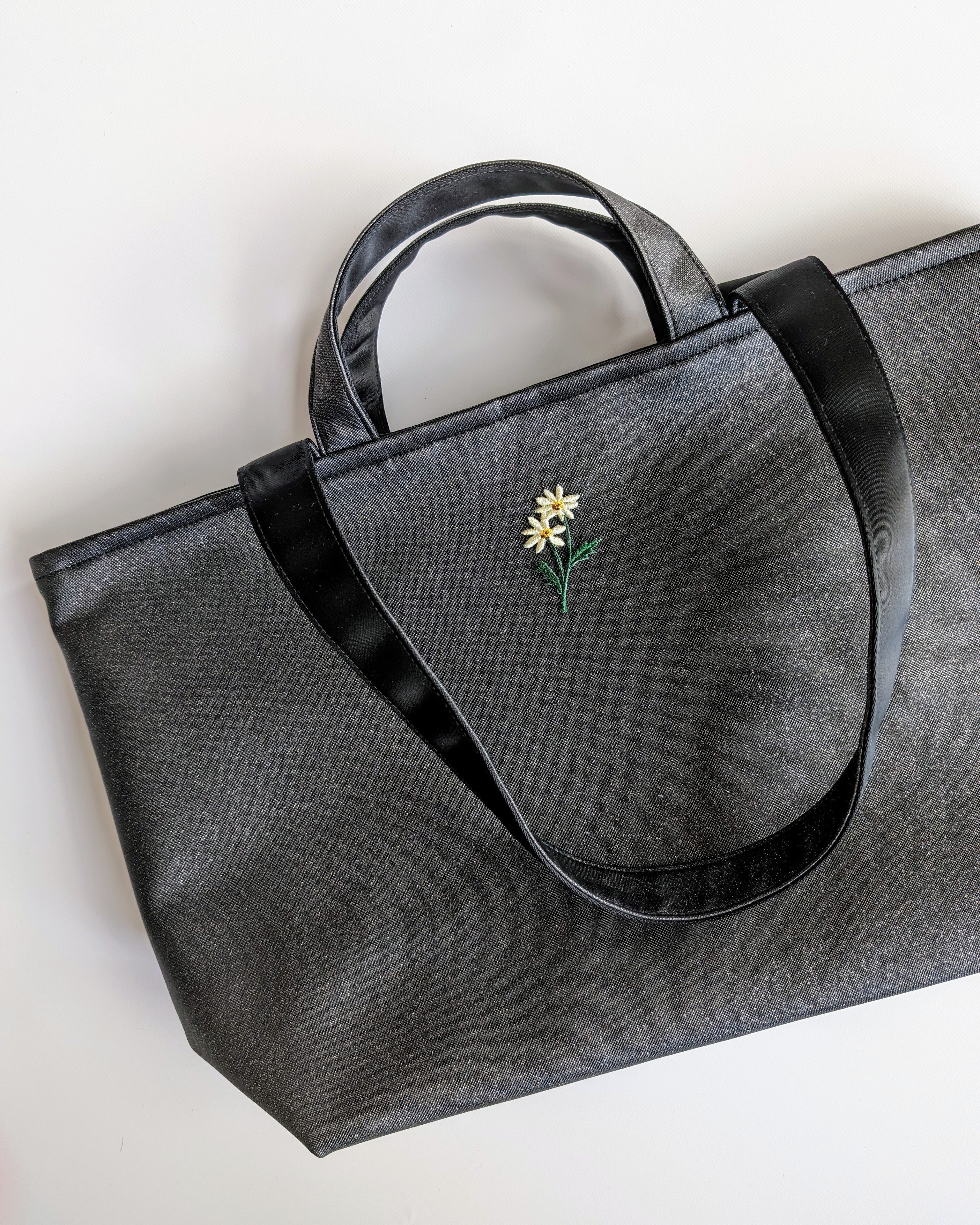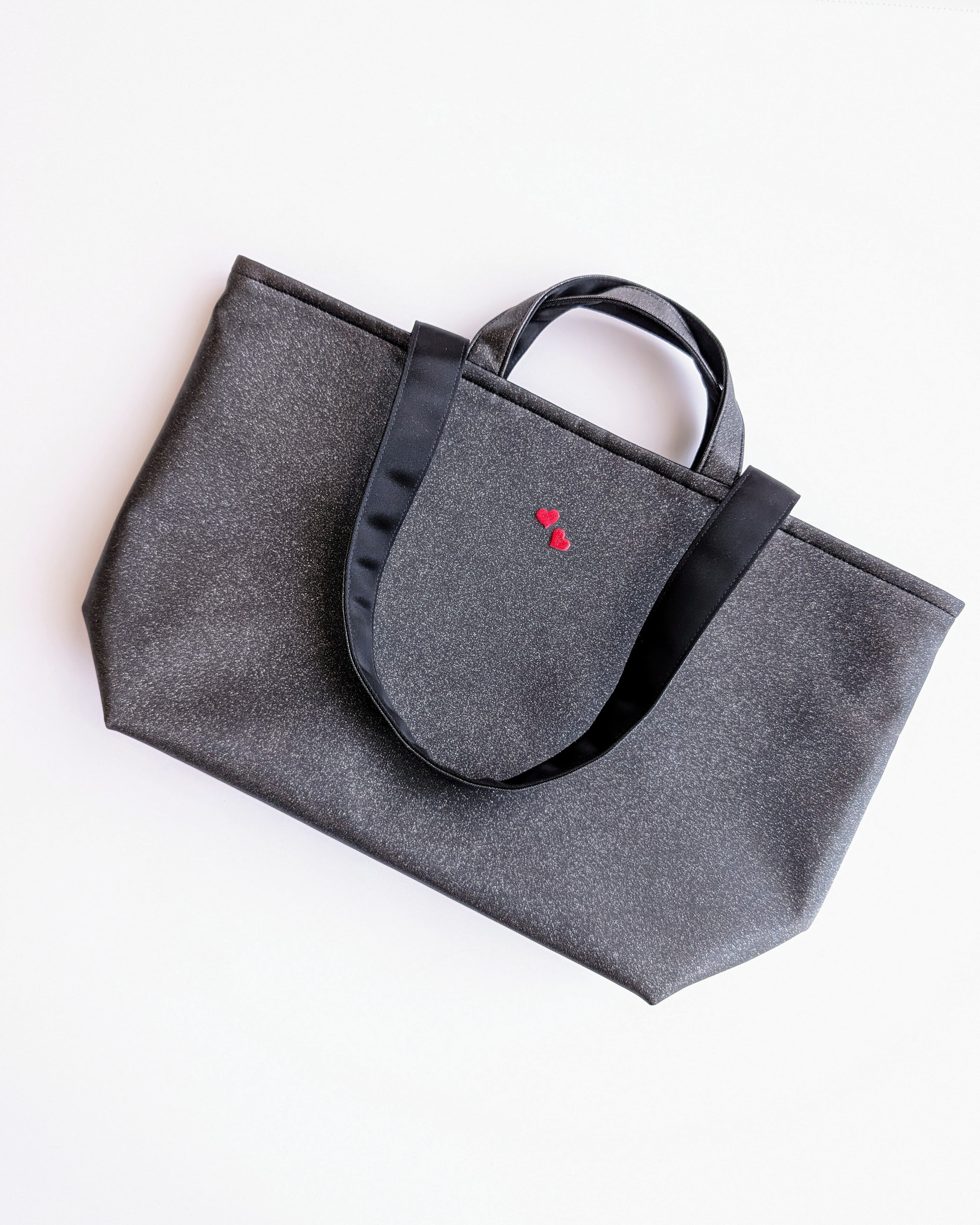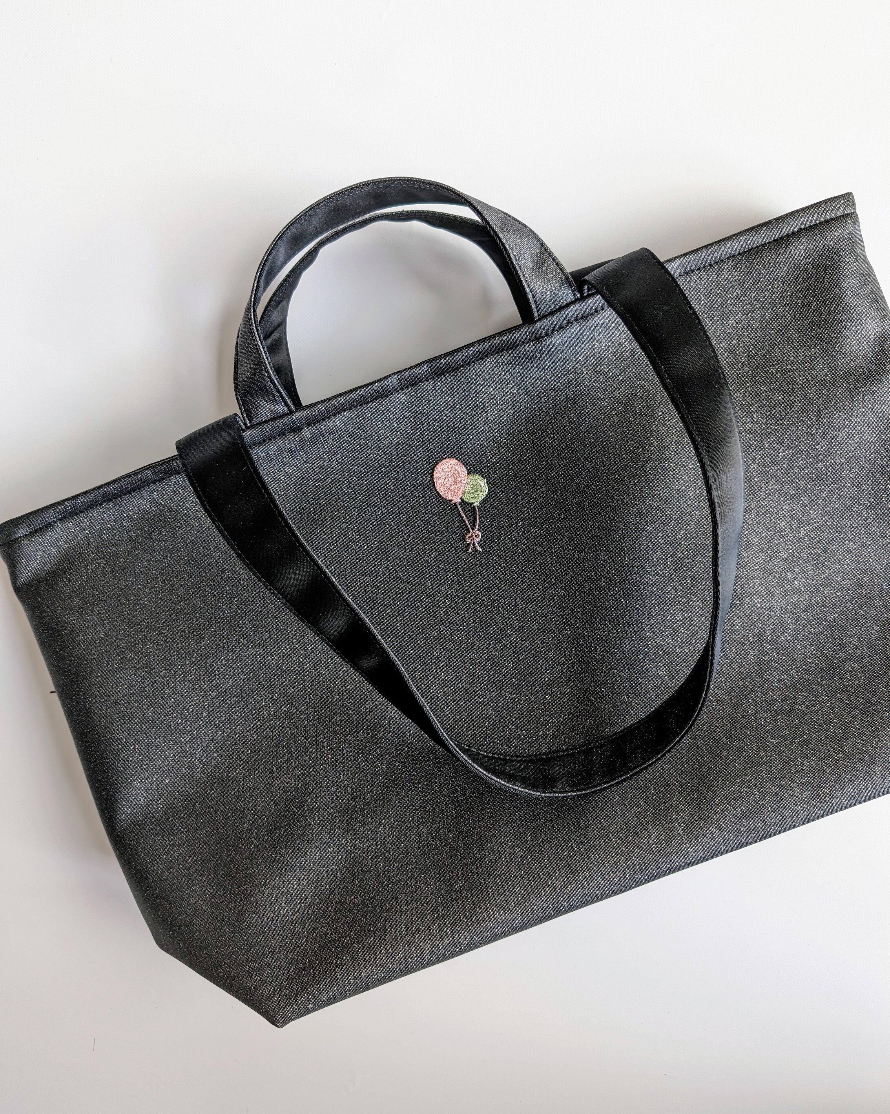 基本は無地のラメ生地のトートバッグです。