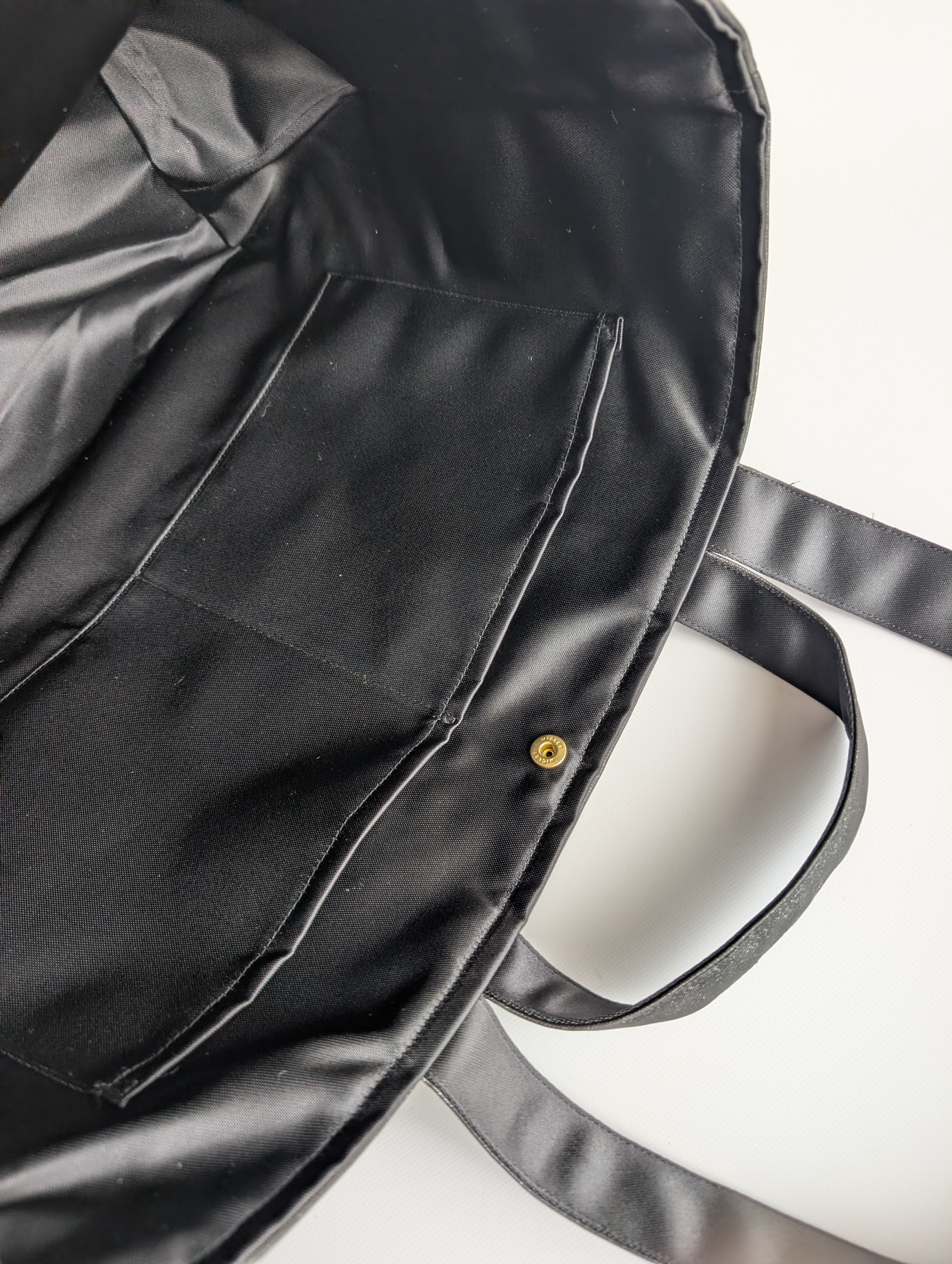 コーヒーやお茶をこぼしてしまっても、さっと拭けばキレイになります。上質な肉厚サテンの裏地も撥水加工がされており、アウトドアなど用途が広がります。